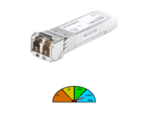 MICROSENS 10 Gigabit Ethernet SFP+ sind standardmäßig in Multimode, Single Mode mit unterschiedlichen Powerbudgets von 10km (1310nm) bis 80km (1550nm) sowie in der simplex-Variante verfügbar. Alle SFP+ haben DDM und werden auch mit erweitertem Einsatztemperaturbereich für den Einsatz in passiv gekühlten Komponenten angeboten.
