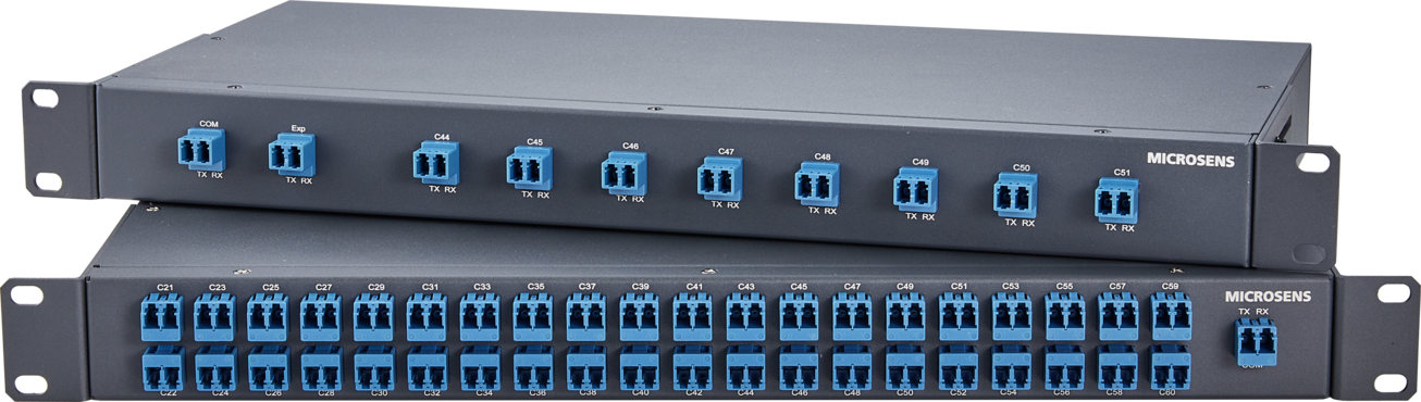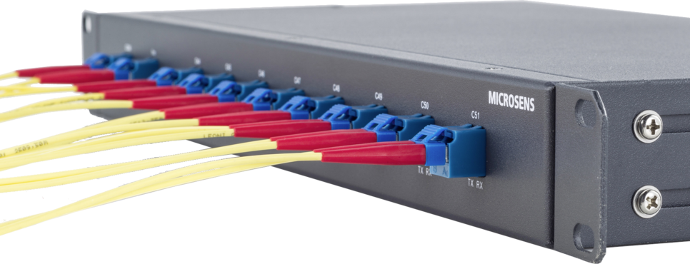 Mit den DWDM-Multiplexern bietet MICROSENS kosteneffiziente Lösungen an, um aktive DWDM-Systeme mit Multiplexern zu erweitern, aber auch, um passive DWDM-Lösungen zu ermöglichen (DWDM-Transceiver wird direkt im vorgelagerten Switch eingebracht).