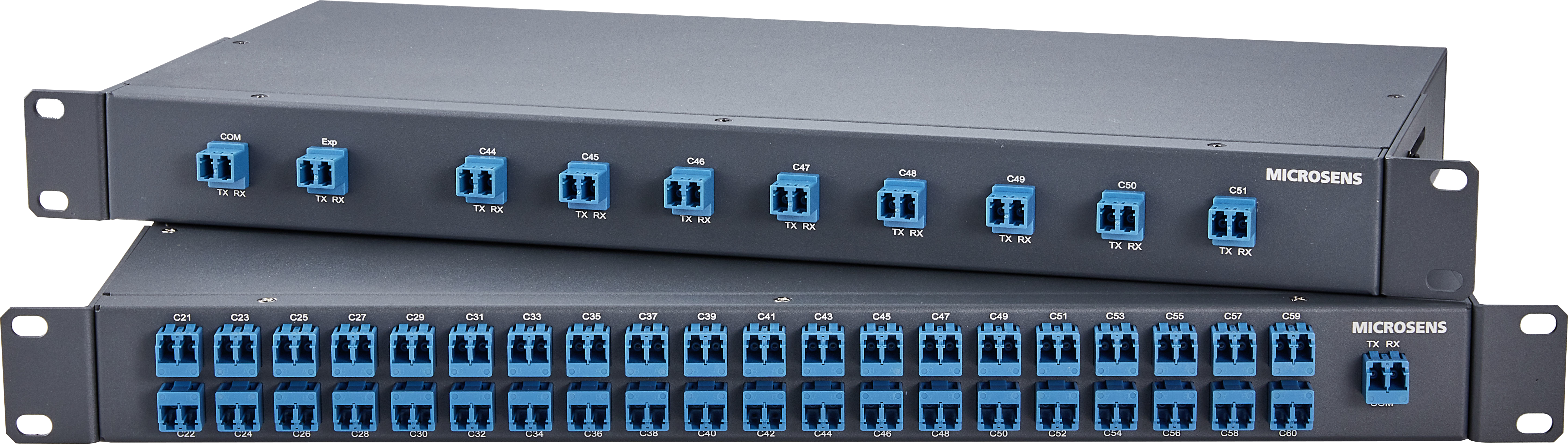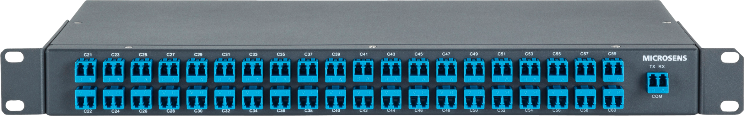 Beide Varianten sind in 19“-Bauform ausgeführt, benötigen keine Spannungsversorgung (MICROSENS-Definition für „passives Gerät“) und arbeiten völlig protokolltransparent. Auch bezüglich der zu übertragenen Datenrate sind den DWDM-Multiplexern keine Grenzen gesetzt, die Grenzen werden durch die aktive Technik und die Faserqualität der Übertragungsstrecke bestimmt.