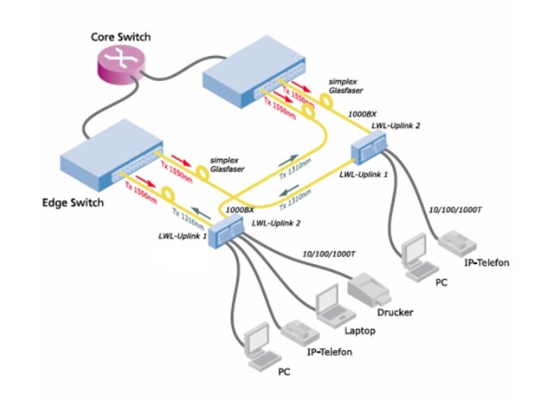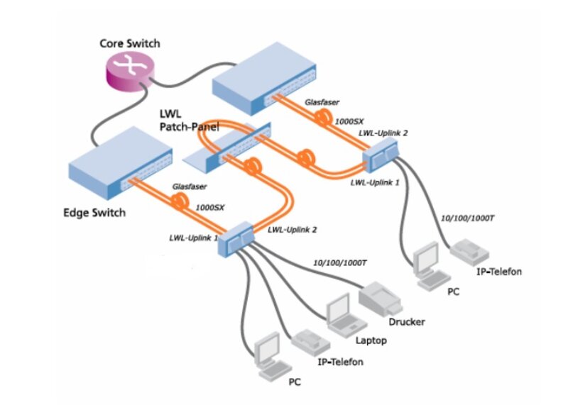 - Fiber SFP uplink with Dual-Speed 100/1000Base-X, optionally as 2x fiber optic version or with integrated SC/ST fiber optics