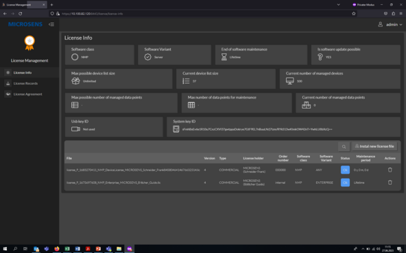 Two year device license grants the right to administrate a MICROSENS device via NMP Web+ for two years