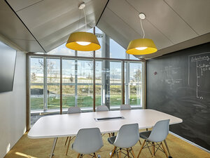 The newly constructed building complex impresses with its distinct design, a carefully planned layout and a look that is as modern as it is inviting; it thus reflects the company's guiding principles as well as its software. It is obvious that efficient and future-proof technology had to be chosen for the network technology as well. The requirements, for the individual workplaces of the more than 175 employees and for retreat boxes, library or project rooms, were precisely defined: