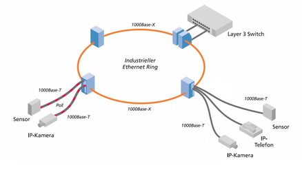 - Redundant in power and data, fail-safe due to MICROSENS ring function with shortest recovery time