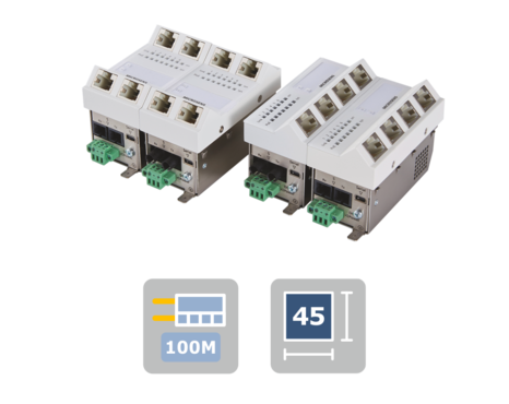 - Smallest & most compact Gigabit Ethernet switch on the market in M45 design for tool-free installation in cable ducts, floor tanks etc.
