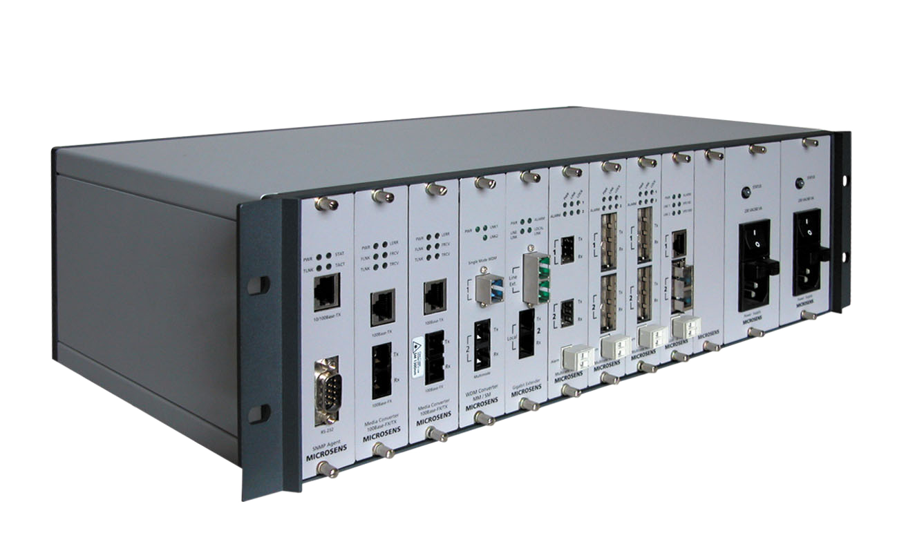 - 19" chassis in 1U (3 slots) and 3U (14 slots), redundant power supply version available